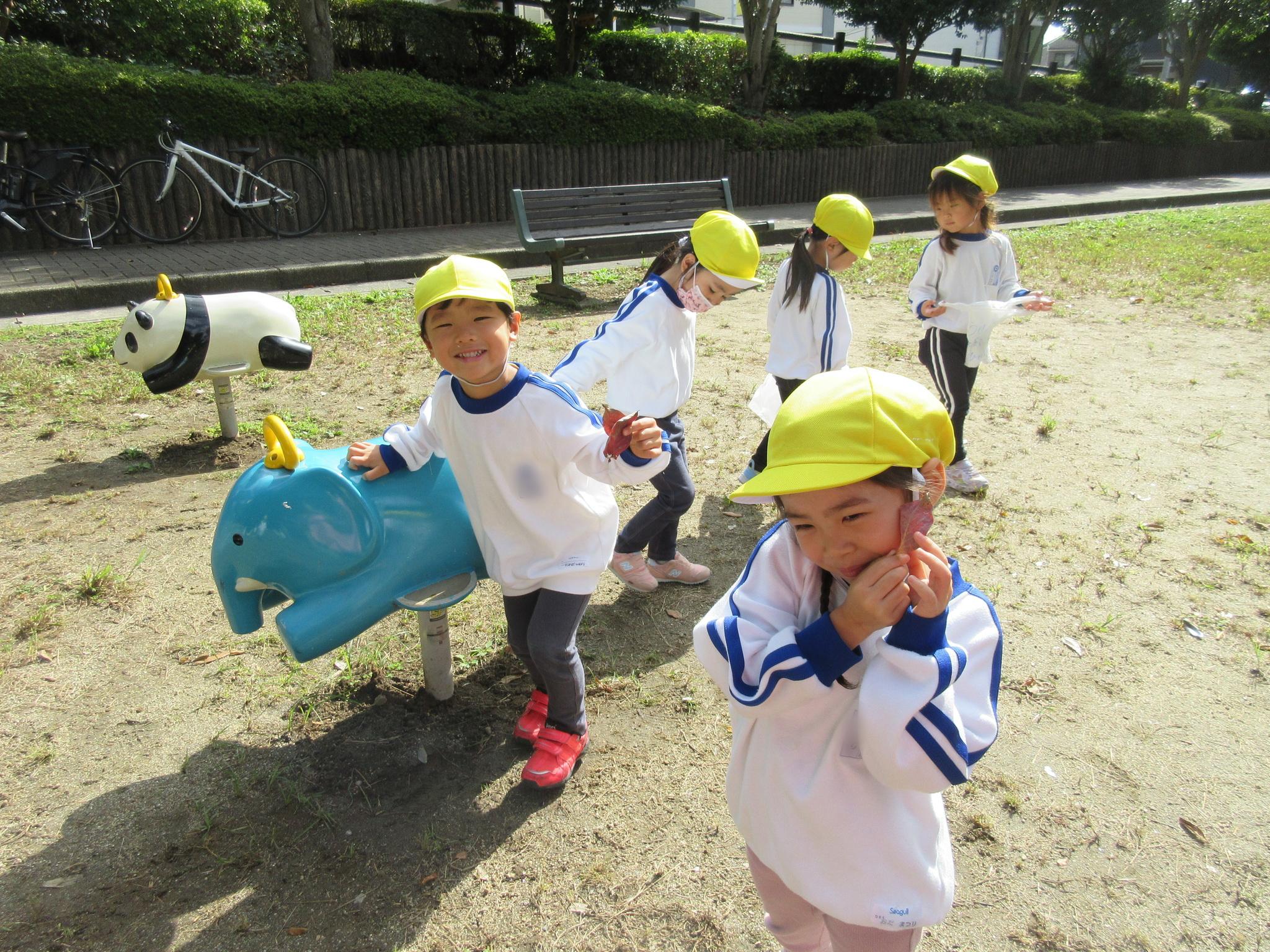 お知らせ 一覧へ戻る北原台公園(うめぐみ)2025-10-28今日はうめ組さんが北原台公園に園外保育に行ってきました黄色い葉っぱや赤い実(ハナミズキ)がありいつもと違う遊具で遊んだりたくさんの秋を見つけたりしましたお散歩をすると どんぐりがたくさん落ちていてみんな夢中で拾い始めると袋がいっぱいに・・・なかなか先に進めませんでしたね今度どんぐりでトトロやどんぐりゴマを作って遊びましょうね